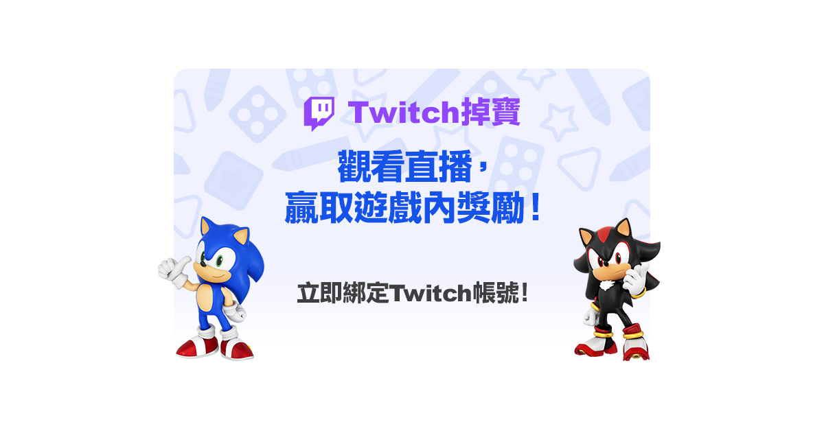 - ATwitch掉寶獎勵限領一次,每個Twitch帳號一次只能和一個《Sonic Rumble》帳號綁定。