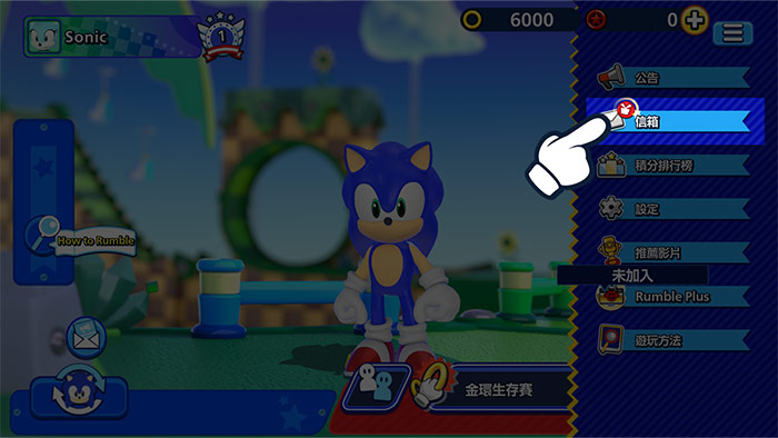 1在《Sonic Rumble》中按下「選單」按鈕。